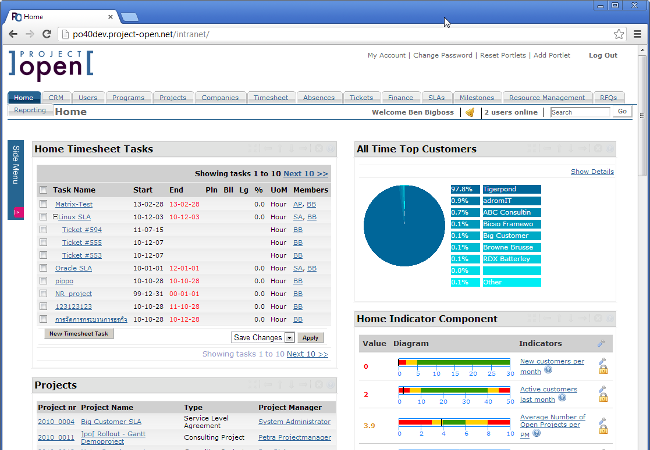 []project-open 是一个双许可证的企业项目管理工具,这意味着其核心是开源的,并且在商业许可的模块中可以使用一些附加特性。根据该项目的社区和企业版本的 比较,开源核心为中小型组织提供了许多特性。