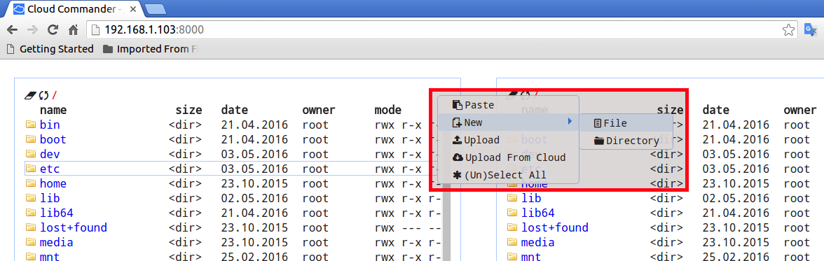 祝贺!Cloud Commander 已经安装好了。让我们往下继续看看 Cloud Commander 的基本使用。