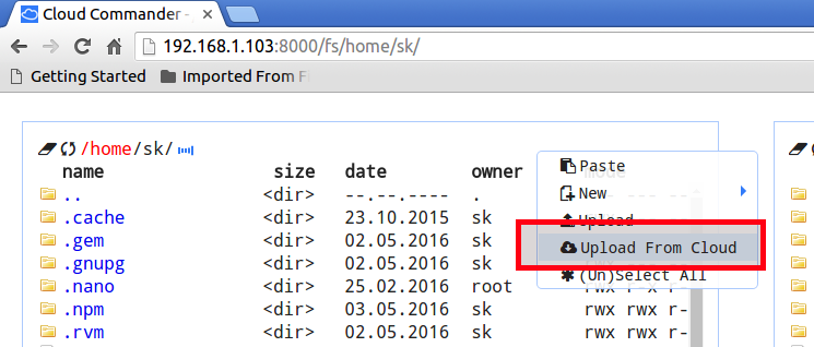 另一个很酷的特性是我们可以从任何系统或设备简单地上传一个文件到 Cloud Commander 系统。