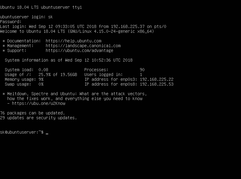 在安装 GPM 之前,看下我的 Ubuntu 18.04 LTS 服务器的屏幕截图: