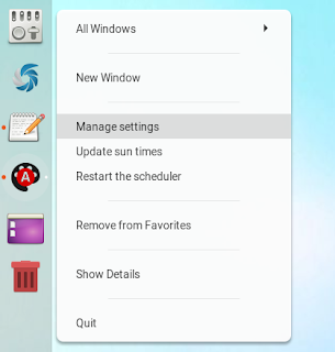 使用 AutomaThemely 有点反直觉。你将在菜单中看到 AutomaThemely 图标,但单击它不会打开任何窗口/GUI。如果你使用支持列表跳转/快捷列表的 Gnome 或其他基于 Gnome 的桌面,你可以右键单击菜单中的 AutomaThemely 图标(或者你可以将其固定为 Dash/dock 并在那里右键单击它)并选择 Manage Settings 启动GUI: