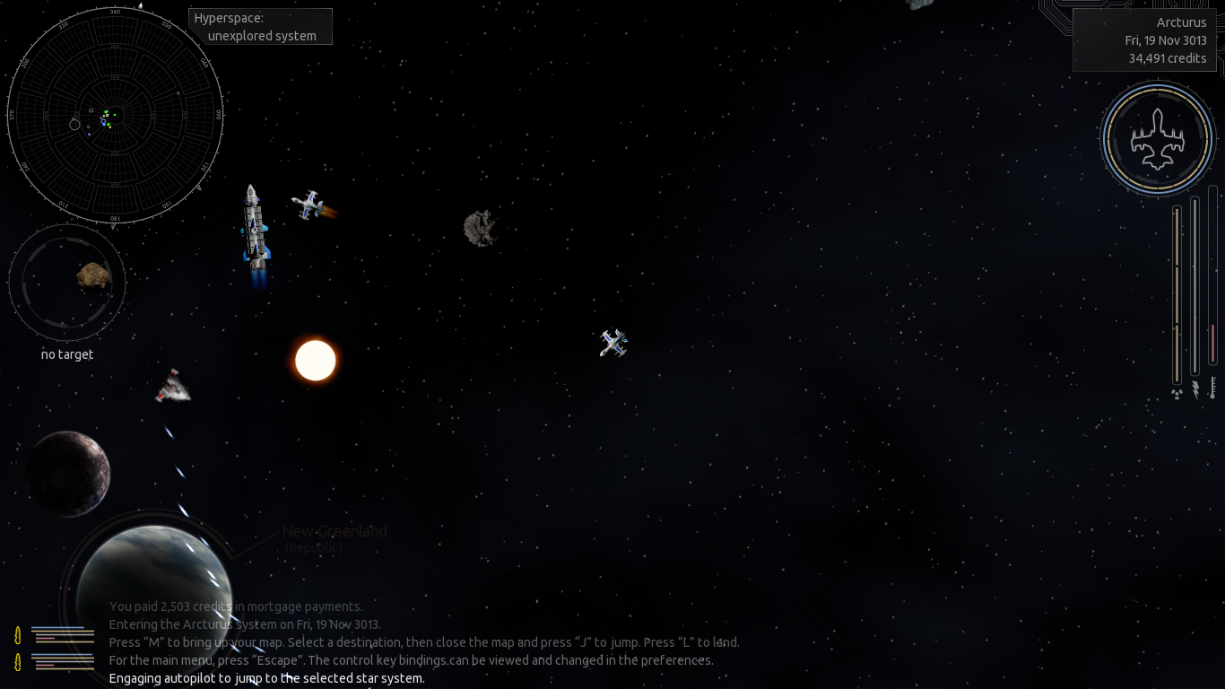 Endless Sky 是 Ambrosia Software 的 Escape Velocity 系列的开源克隆品。玩家乘坐一艘宇宙飞船,在不同的世界之间旅行来运送货物和乘客,并在沿途中承接其他任务,或者玩家也可以变成海盗,并从其他货船中偷取货物。这个游戏让玩家自己决定要如何去体验这个游戏,以太阳系为背景的超大地图是非常具有探索性的。Endless Sky 是那些违背正常游戏类别分类的游戏之一。但这个兼具动作、角色扮演、太空模拟和交易这四种类型的游戏非常值得一试。