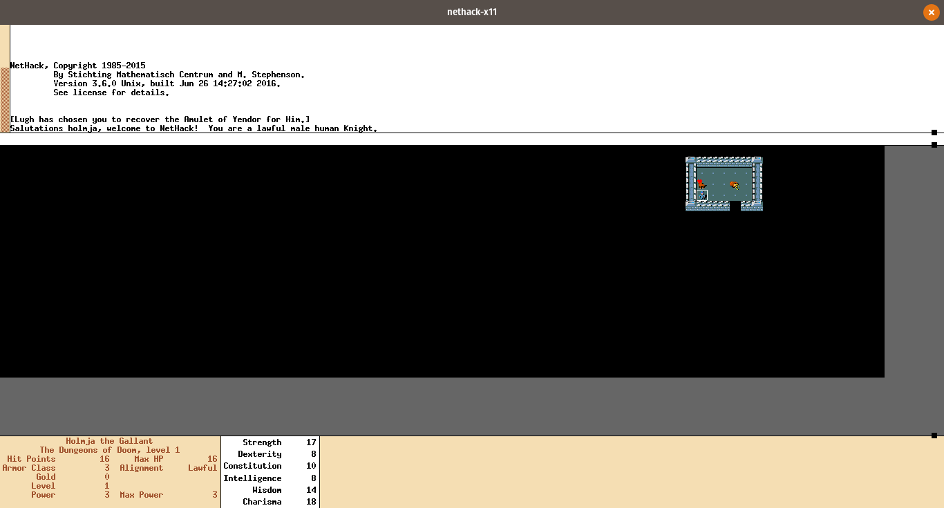 NetHack 是一款经典的 Roguelike 类型的角色扮演游戏,玩家可以从不同的角色种族、分类和阵营中进行选择,来探索这个多层次的地下城。这个游戏的目的就是找回 Yendor 的护身符,玩家从地下层的第一层开始探索,并尝试向下一层移动,每一层都是随机生成的,这样每次都能获得不同的游戏体验。虽然这个游戏只具有 ASCII 图形和基本图形,但是游戏玩法的深度能够弥补画面的不足。玩家如果想要更好一些的画面的话,可能就需要去查看 NetHack 的 Vulture 了,这个方式可以提供更好的图像、声音和背景音乐。