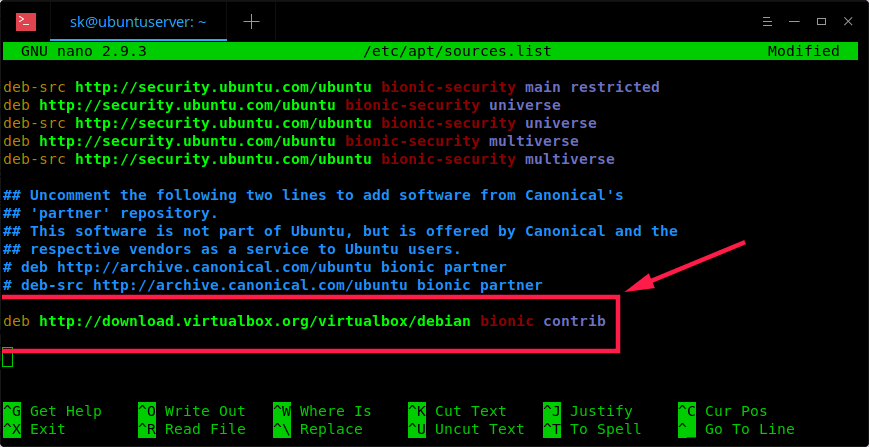 deb http://download.virtualbox.org/virtualbox/debian bionic contrib