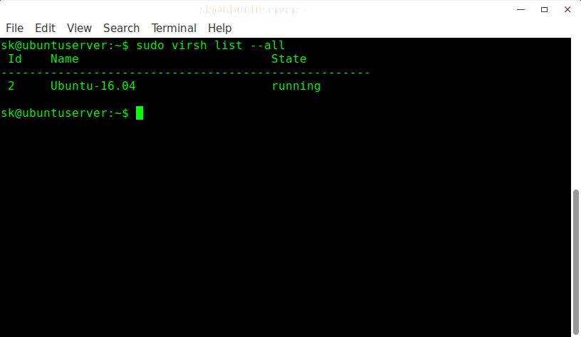正如在上面的截图所看到的,Ubuntu 16.04 虚拟机的 Id 是 2。因此,启动它时,你也可以像下面一样只指定它的 ID。