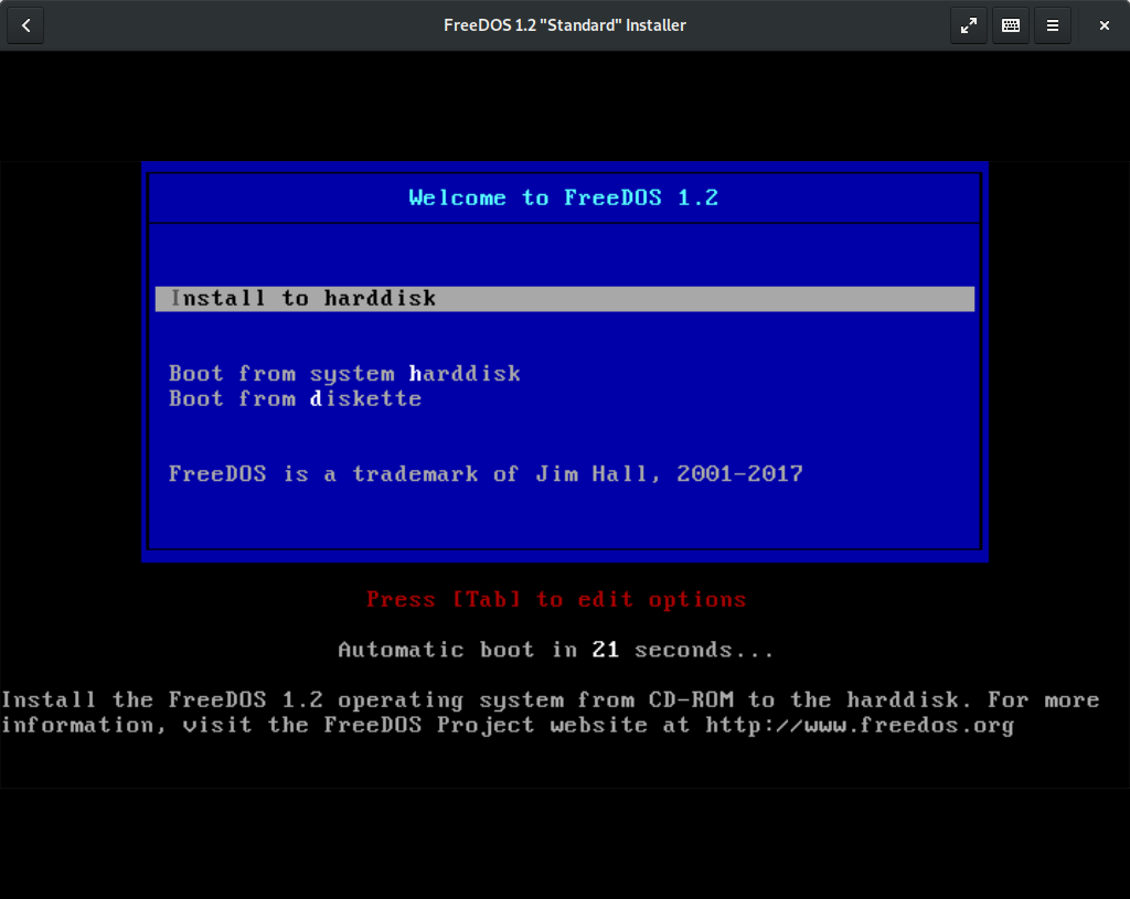 要从列表中安装一个操作系统,只需选择并完成创建一个新的虚拟机。一些操作系统,比如 FreeDOS,并不支持快速安装。这些操作系统需要虚拟机从安装介质中引导。之后你可以手动安装。
