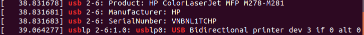 该命令返回 “Bus 002 Device 004: ID 03f0:ad2a Hewlett-Packard” —— 这没有太多价值,但可以得知打印机已连接。我可以通过输入以下命令获得有关打印机的更多信息: