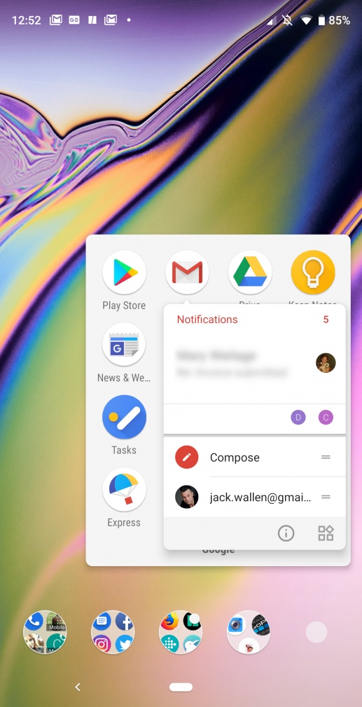 例如,长按 GMail 启动器,就可以执行回复最近的邮件、撰写新邮件等功能。在 Android 8.0 中,这个功能则以弹出动作列表的方式展现。在 Android 9.0 中,这个功能更契合 Google 的 材料设计 Material Design 风格(图 4)。