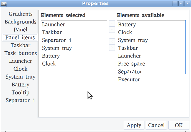 在主题中,你可以自定义面板项目的位置以及面板上每个项目的背景和字体选项。你还可以在启动器中添加和删除项目。