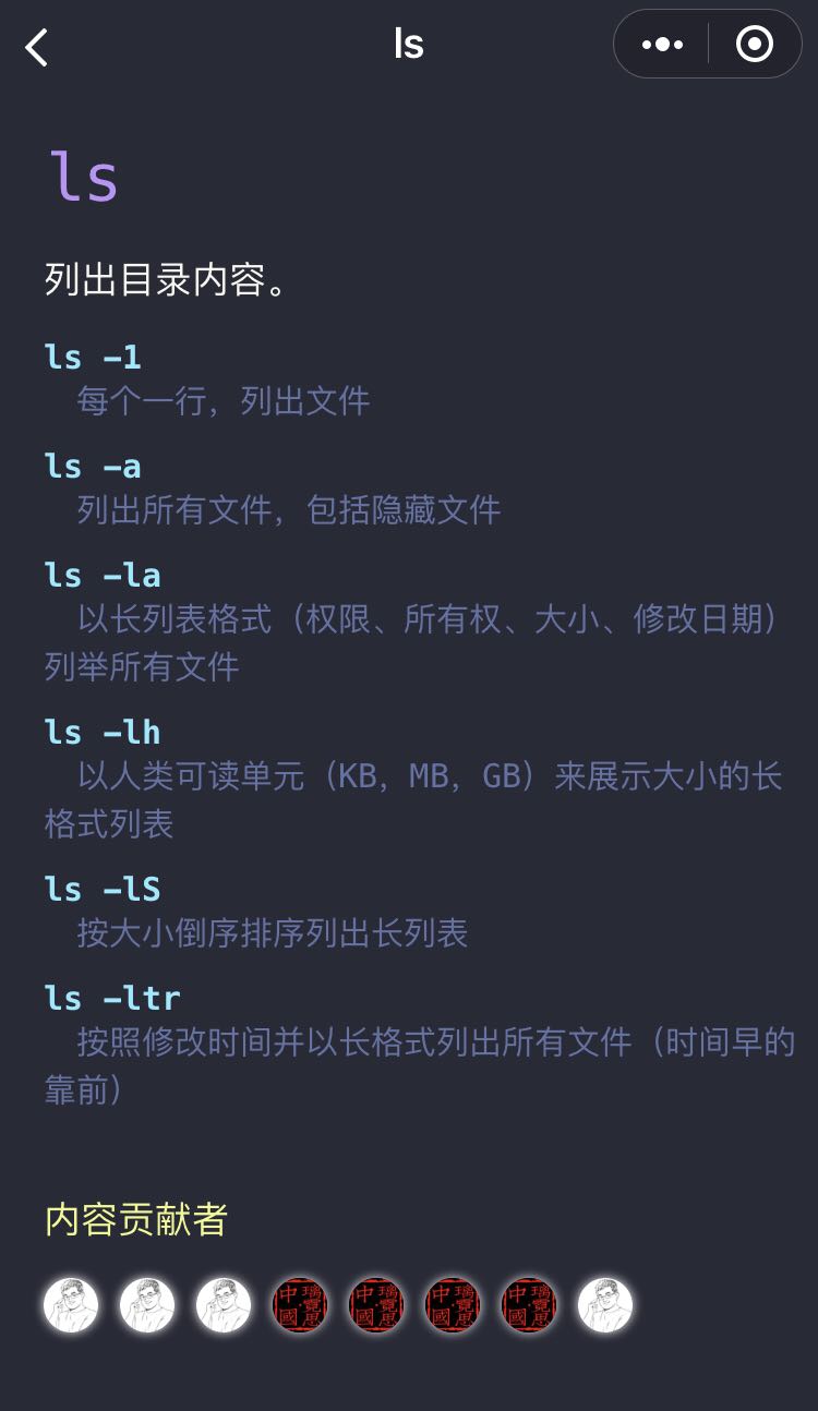你可以看到,命令页面的下方,列出了对该页面做出了翻译贡献的贡献者头像。