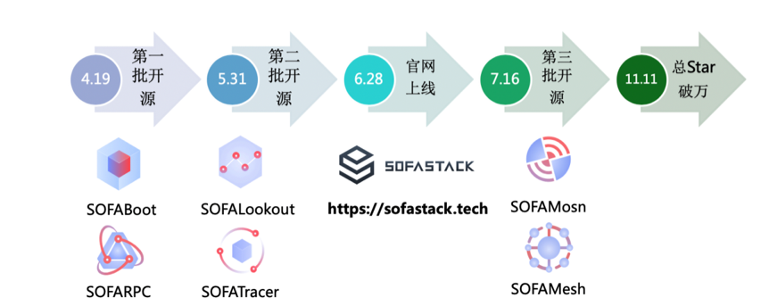 SOFA 从 2018 年 4 月开始对外开源,得益于社区和开发者的认同,在经历了半年多的时间,SOFA 所有相关的开源代码,获得了累计 10000+ 的 Star和 80 多个代码贡献者。