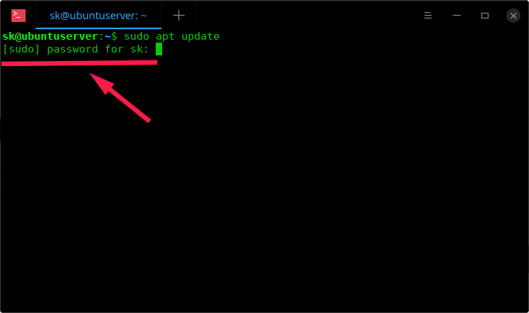 看到了吗?这个命令将提示我输入 sudo 密码。