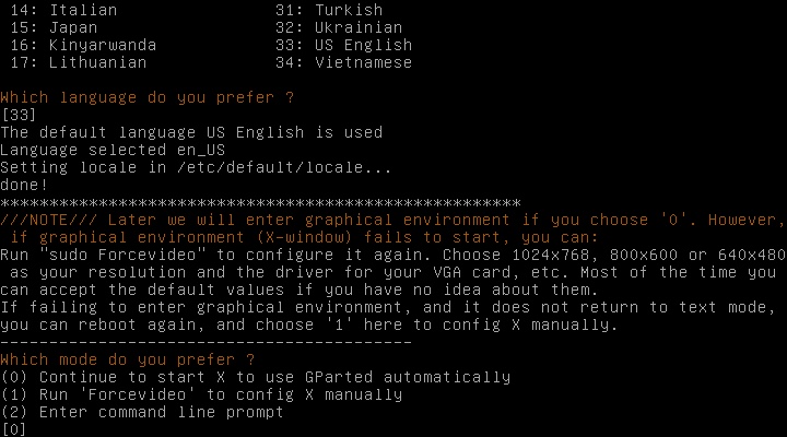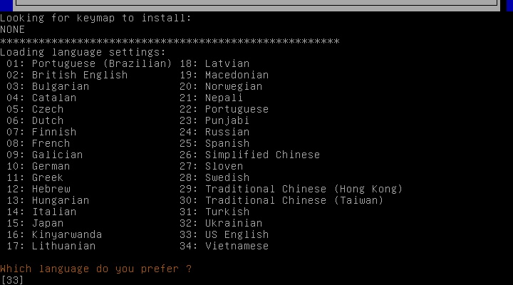 默认情况下,它选择 “33” 美国英语,按下回车即可。