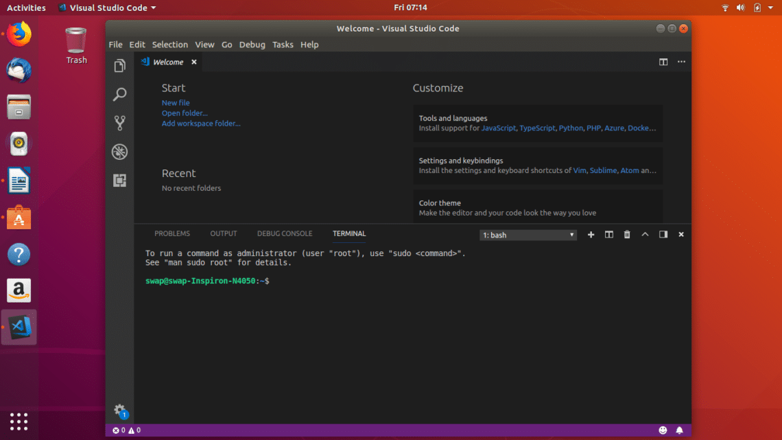 Visual Studio 自身集成了 Git,它有优秀的用户界面,你会发现它与 Atom Text Editor 和 Sublime Text 非常相似。你可以从 Ubuntu 软件中心下载和安装它。