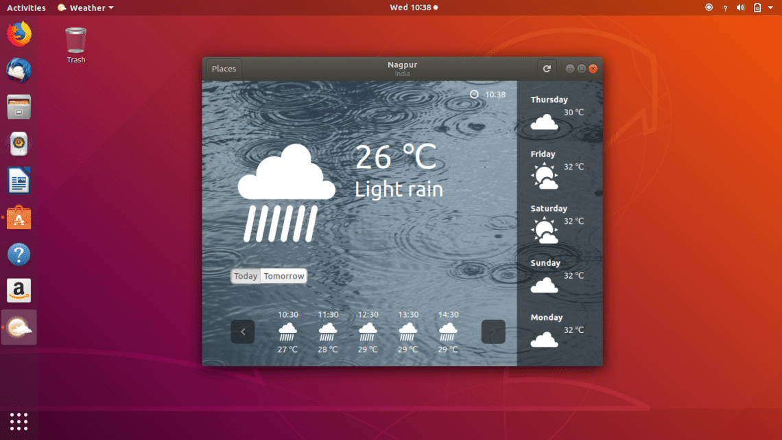 它集成在 GNOME shell 中,给你关于最近搜索位置的当前天气状态。它有极简的用户界面,在最小硬件需求下运行很顺畅。