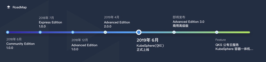 从 2017 年 6 月开始,周小四便开始调研和思考如何设计 KubeSphere 的原型。2018 年 4 月,KubeSphere 项目正式立项,经过了三个月的苦干,终于在同年 6 月正式发布了 KubeSphere 的社区版,并邀请了部分用户进行内测。