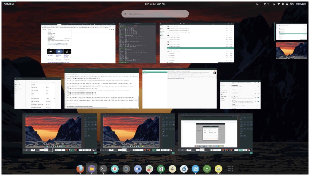 活动概述将显示所有运行的应用程序,或通过单击 Super 键 ,或在左上角上单击“活动”按钮来启动/打开窗口。