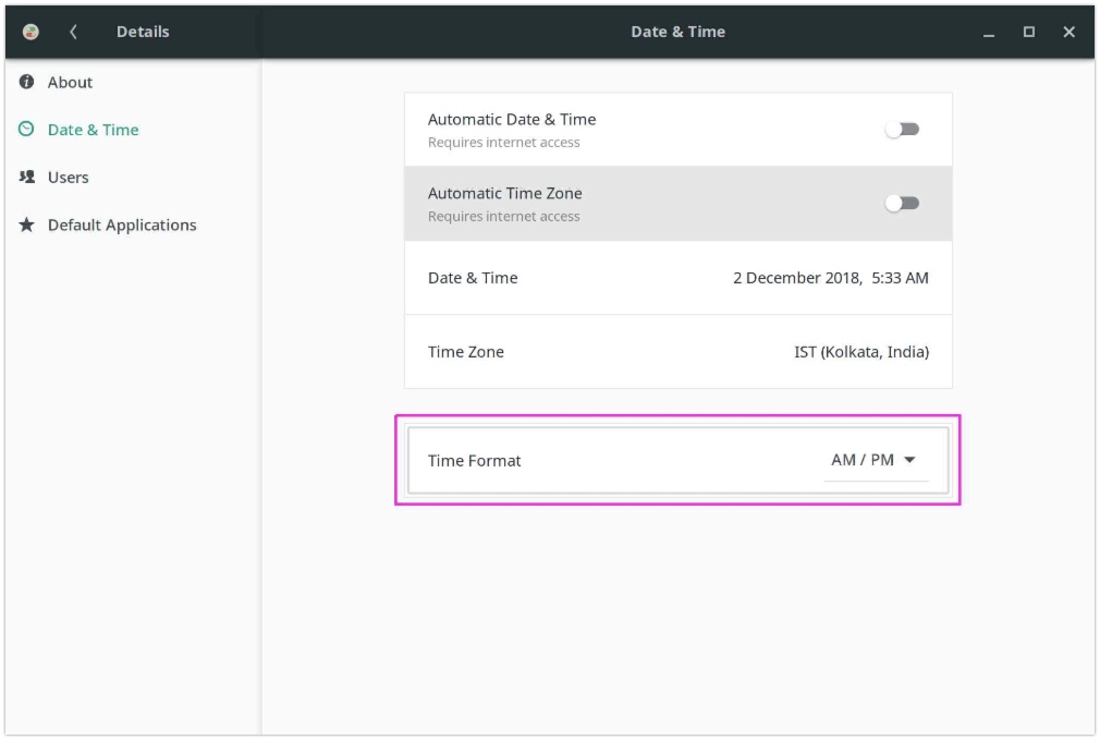 GNOME 3 默认用 Sun 04:48 的格式来显示日期和时间。它并不清晰易懂,如果你想获得以下格式的输出:Sun Dec 2 4:49 AM ,遵循下面的步骤。
