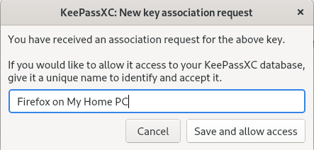 通过这种方式,你可以通过 KeePassXC 获取互联网凭据,而无需将其保存在浏览器中。
