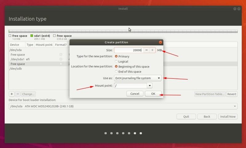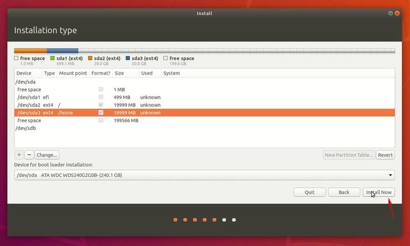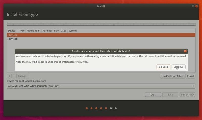 现在我准备安装 Ubuntu 18.04 长期支持版,因为我现在就有这个系统的安装文件。你也可以按照这个教程安装其他的发行版。在最重要的分区之前,前边的步骤都大致相同。