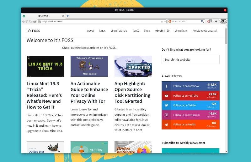 Falkon 浏览器适合那些正在寻求轻巧且功能丰富的 Web 浏览器的人。值得尝试的另一个替代是 Midori。