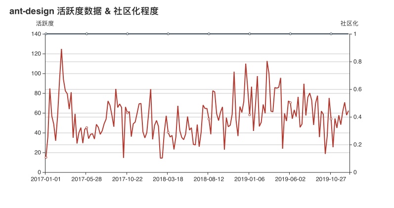这是一个“服务于企业级产品的设计体系”,是由蚂蚁金服体验技术部采用 React 封装的一套组件库。同时,也是去年的 Grank 评分的第一名。 Ant-Desgin 项目在整体的大方向上于去年并没有太大的区别,甚至从数据的角度上来,2019 年 Ant-Design 有更多的数据更新,保持其一贯优秀的活跃度与社区化程度。