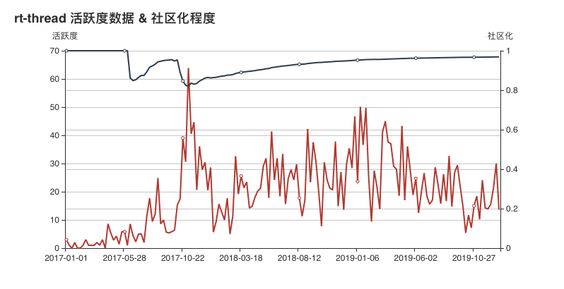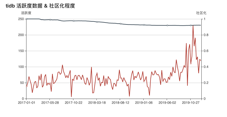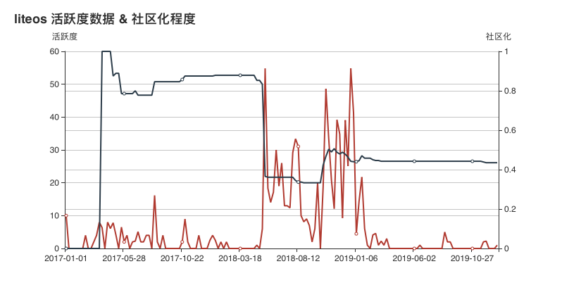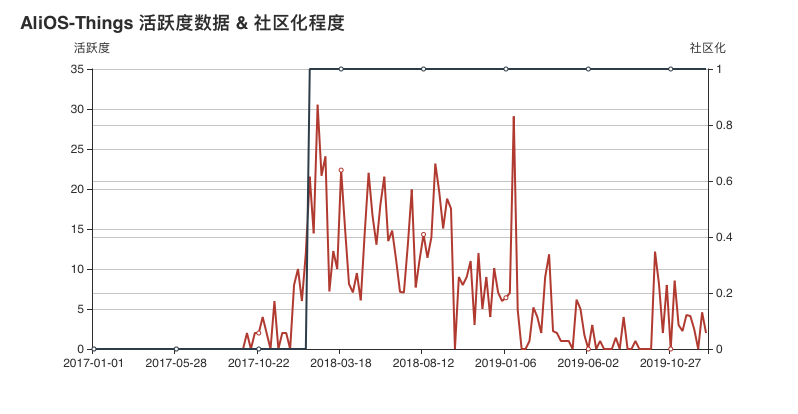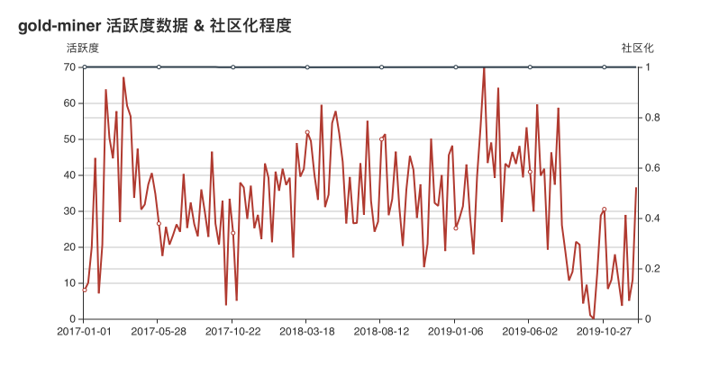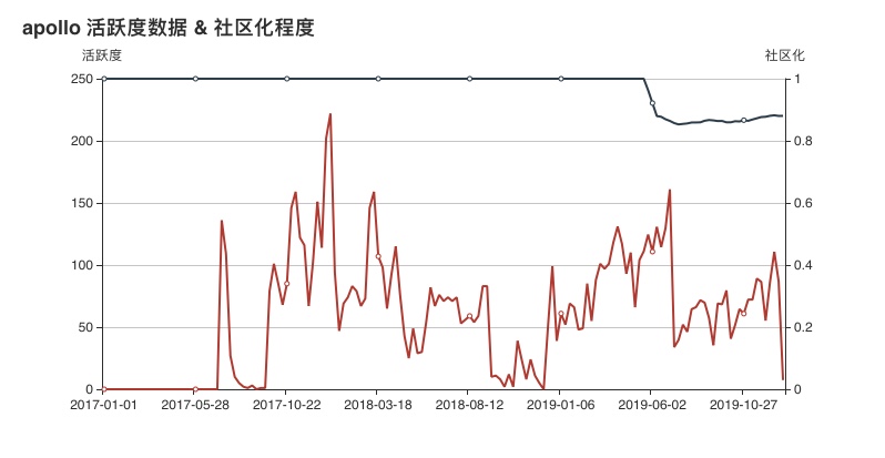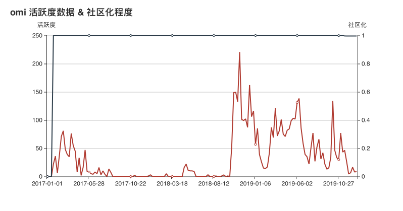 从数据上来看, Omi 项目的活跃度从 2018 年 9 月开始,有大幅度提升,并在 2019 年年初达到了数据的顶峰。在社区化程度方面,从 2019 年年中开始,其社区活跃度出现了下降的趋势,猜测可能是其在内部拥有了更大的话语钱,致使更多的企业内部开发者开始参与到 Omi 项目的开发。
