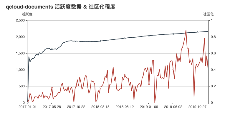 今年的文档类活跃项目最为亮眼的项目,莫过于来自于 腾讯云的 tencentyun/qcloud-documents,此项目的活跃度远超其他项目,总活跃度达到 685.33 ,是同类项目第二名的 5 倍,是开发类项目第一名的 10 倍。