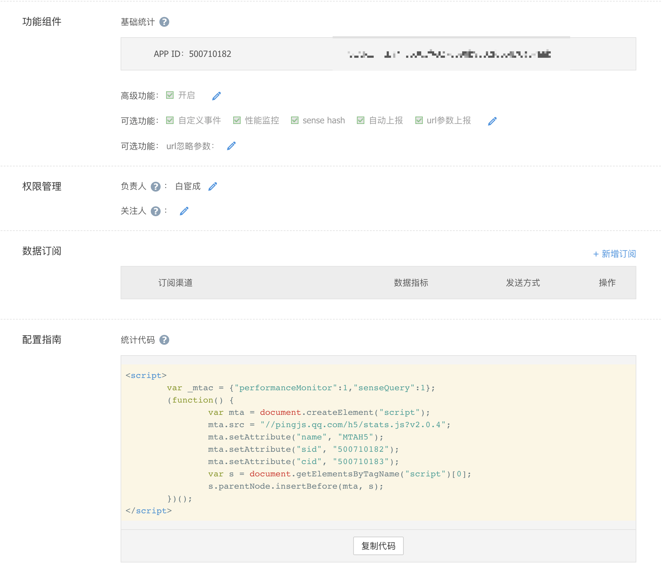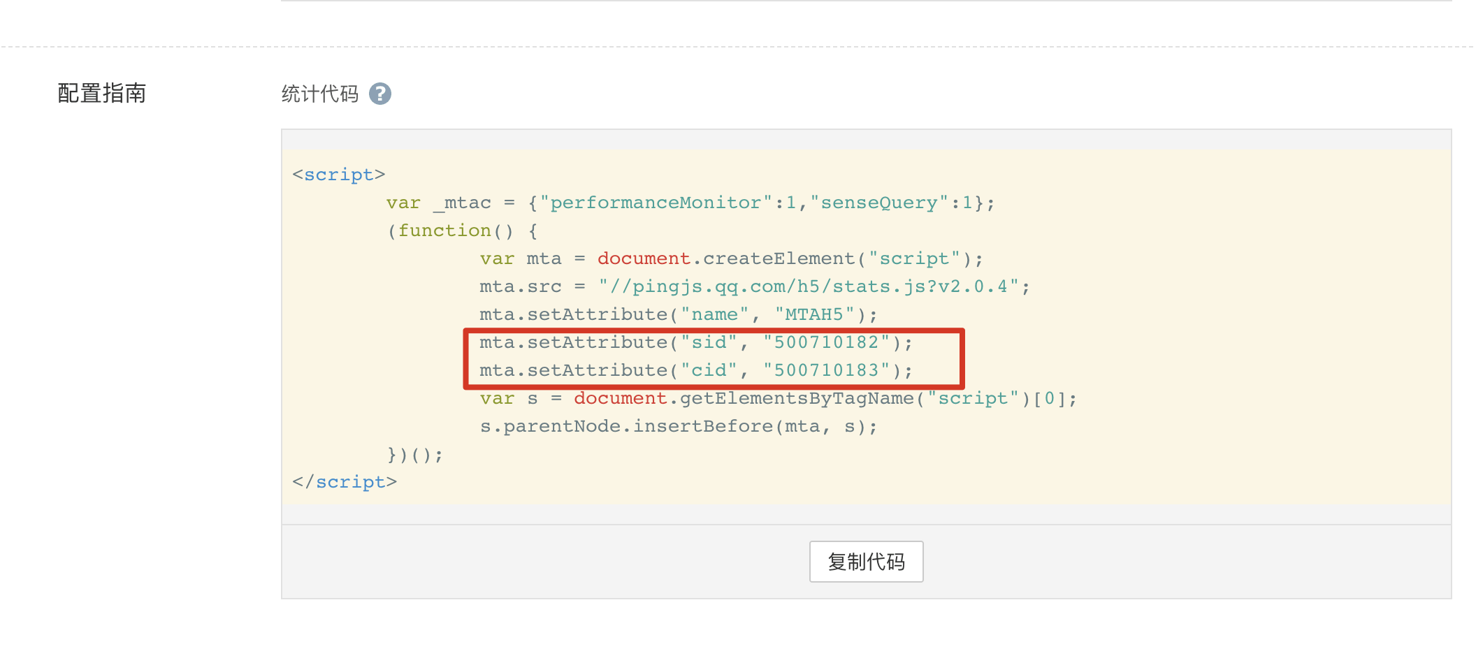 在我的代码中,配置了 sidcid ,这些信息你都需要在腾讯 MTA 的应用管理后台获取。