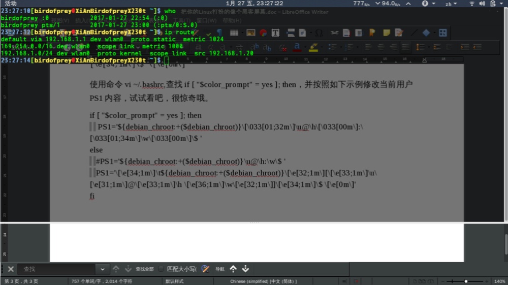 今天 Linux 已经成为了一个庞大的生态链系统。从树莓派到超级计算机,从网络交换机到 SDN 都有 Linux 操作系统的身影。其实 GNU/Linux 系统本身指的是很多 GNU 自由开源软件和 Linux 内核的集合体。各种 Linux 发行版可以让你满足各种独特或者大众的功能。Linux 系统是当前系统管理员或者网络管理员尽量要熟悉的操作系统之一。当然,Linux 也提供了很多好玩的工具软件,我们以 Debian GNU/Linux 8.7 为例进行配置,将你的电脑终端命令行改变成一个就像电影里黑客的界面,装逼很有用哦。