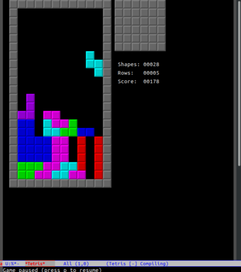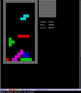 你知道吗,Emacs 捆绑了一个俄罗斯方块的实现?只需要输入 M-x tetris 就行了。