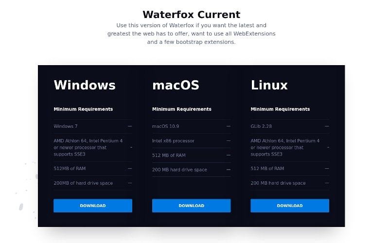 你可以得到两个单独的 Waterfox 浏览器版本。当前版旨在提供现代体验,而经典版则旨在支持 NPAPI 插件 和 bootstrap 扩展。