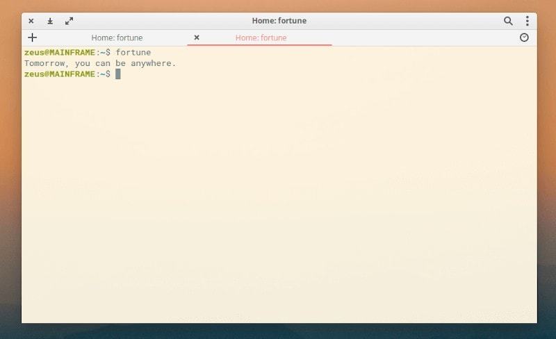 别担心,你只需在终端打出 fortune 然后按下回车。终端将会随机显示出一个幸运语,就像你从幸运饼干里得到的一样。