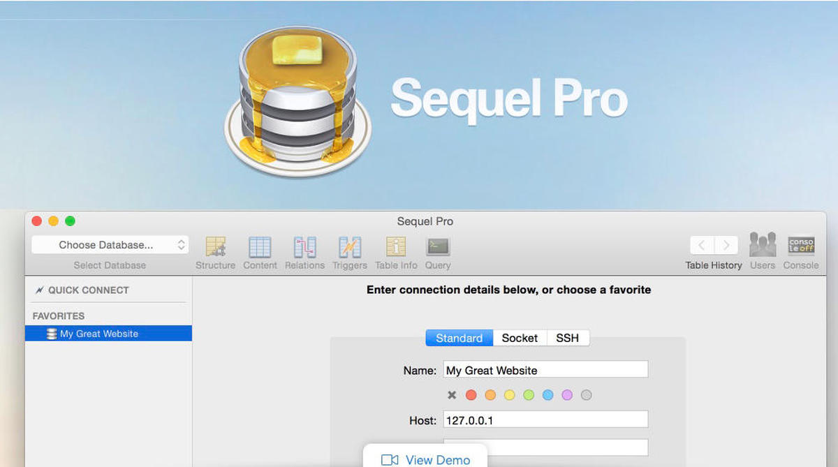 我的代码要做大量的 SQL 操作。因此,我需要能够查看已经存储到数据库中的内容。对我来说,最简单、最快速的方法不是 PhpMyAdmin,而是一个叫 Sequel Pro 的 Mac 本地应用(很奇妙,它的图标上把煎饼和数据存储混为一体)。