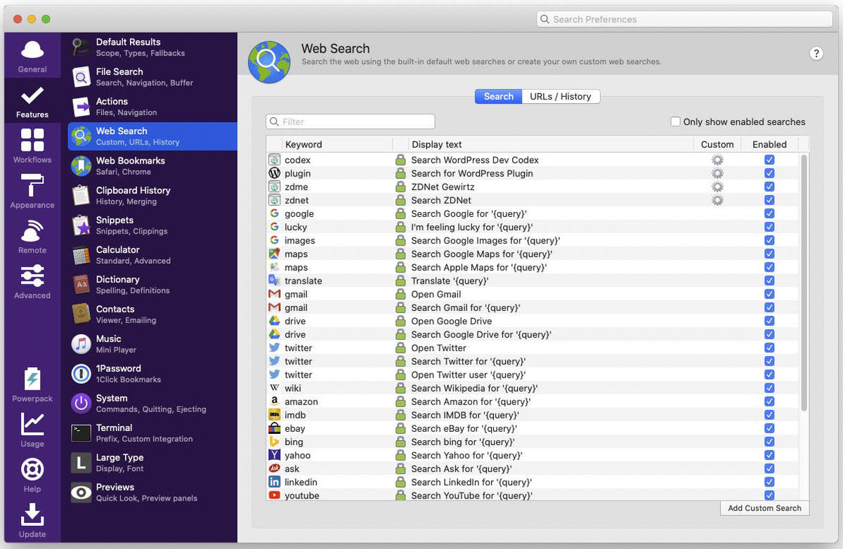 如果我键入 “codex”,它就会把后面的任何内容作为搜索字符串来在 WordPress 开发者文档站 codex 上搜索。输入 “plugin”,会搜索 WordPress 插件库。输入 “zdme”,会搜索 ZDNet 中我写过的带有要搜索的字符串的文章。我经常使用这个方法在文章中放置链接。现在,这些可能看起来很简单,你可以设置 Chrome 浏览器来进行自定义搜索,但同样,与快捷栏一样,这可以节省鼠标移动和按键。如果我需要查看 WordPress 函数的定义,只需轻点一下按键,就能得到它,而不需要动用鼠标。