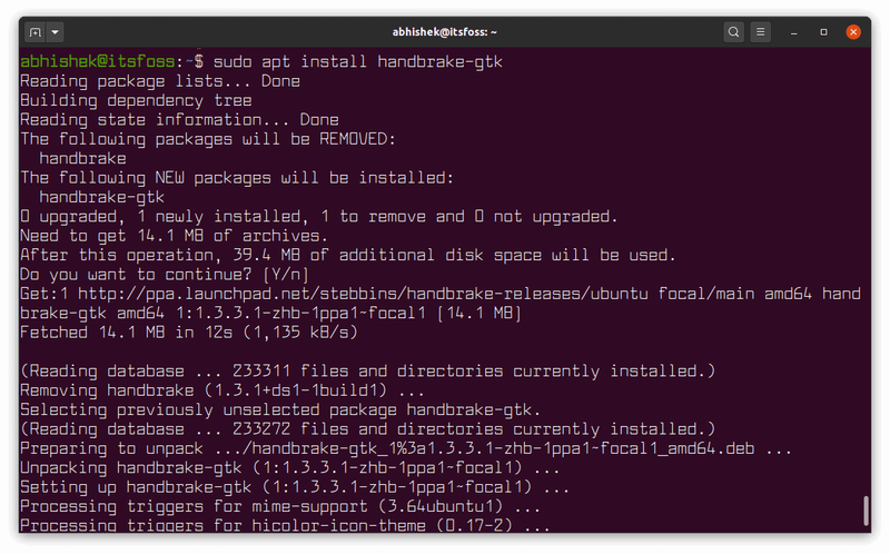 现在,使用以下命令安装最新版本的 HandBrake: