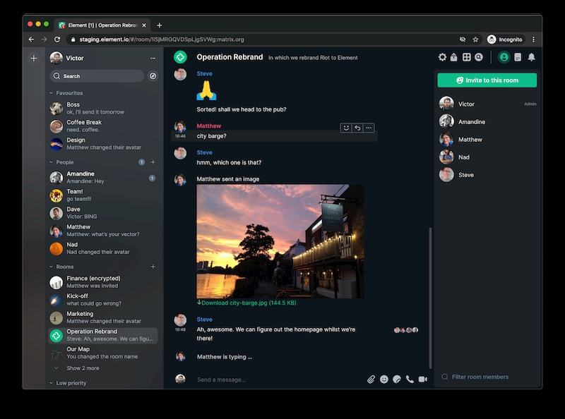 最近的公告也表明,此举不仅仅是简单的改名。Element 还发布了“新一代安卓版 Matrix 客户端”。该客户端的前身是 RiotX,现在改名为 Element。(还有呢?)它对以前的客户端进行了彻底的重写,现在支持 VoIP 通话和小部件。Element 还将在 iOS 上推出,支持 iOS 13,并提供“全新的推送通知支持”。