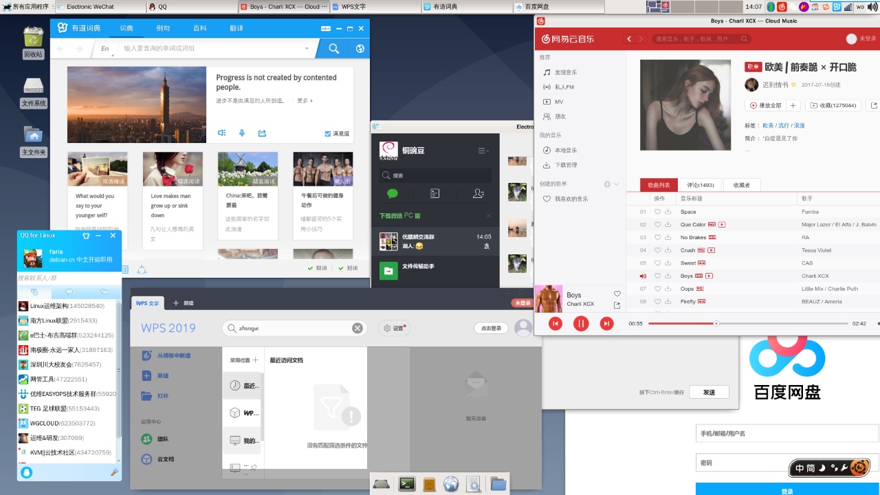 对中文商业软件在适配测试过程中发现的问题,也积极和商业公司沟通,进行良性互动。得到了百度网盘、WPS 、永中 office 等公司的反馈。而在向 linuxqq 反馈的意见,也在 linuxqq 新版本中得到了改进。