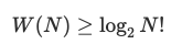 包含 N 个元素的数组,元素次序随机且无偏时的熵最大,其值为 log<sub> 2</sub> N! 个比特。这证明 O(N log N) 是一个基于比较的对任意输入排序的最优平均值。