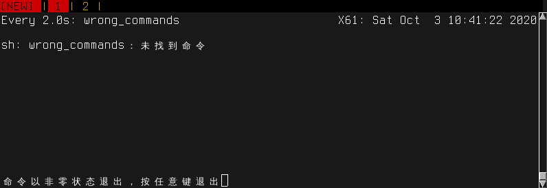 默认情况下,watch 并不会关心命令的执行结果是否成功,但你可以设置让 watch 检测命令的返回值,当命令运行返回非 0 时发出蜂鸣(-b/--beep)或者直接退出(-e/--errexit)。