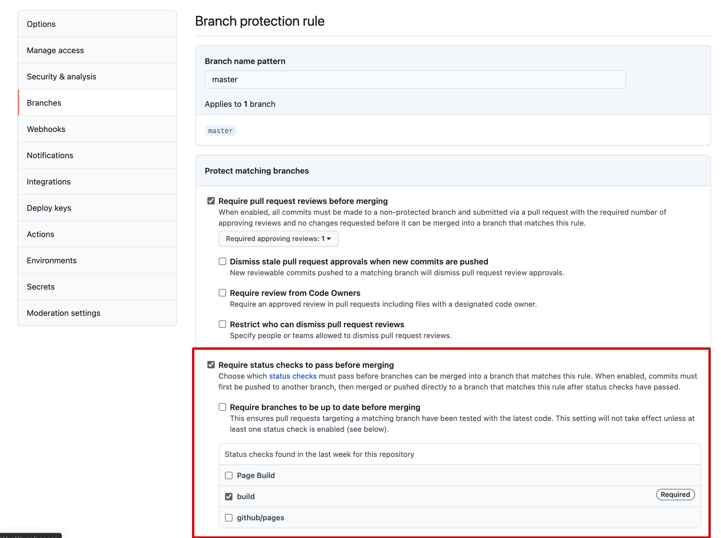 为了确保修改符合标准,我们限制了新的拉取请求必须通过 CI 检查,才能合并进入 master 分支,因此,也需要修改相应的分支保护规则,确保设定相应的保护。