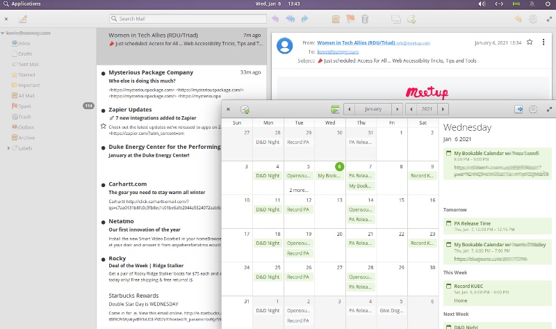 ElementaryOS 的邮件和日历应用(Kevin Sonney, CC BY-SA 4.0)
