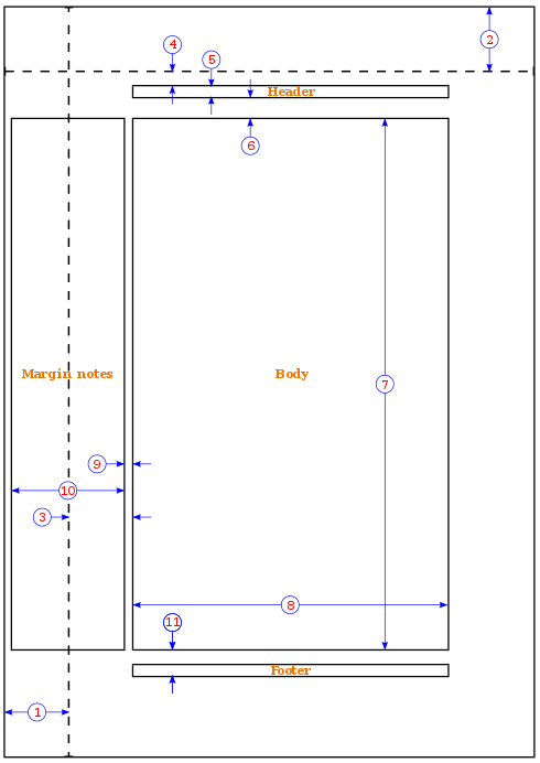 另一个选择是使用 geometry 包。在探索 geometry 包如何操纵页边距之前,请首先查看如下所示的页面尺寸。