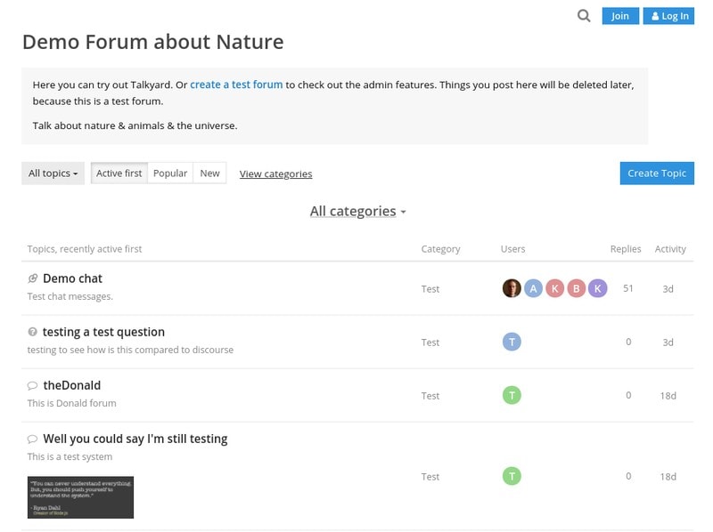 Talkyard 是完全免费使用的,是一个开源项目。它看起来很像 Discourse,但是如果你深入了解一下,还是有区别的。