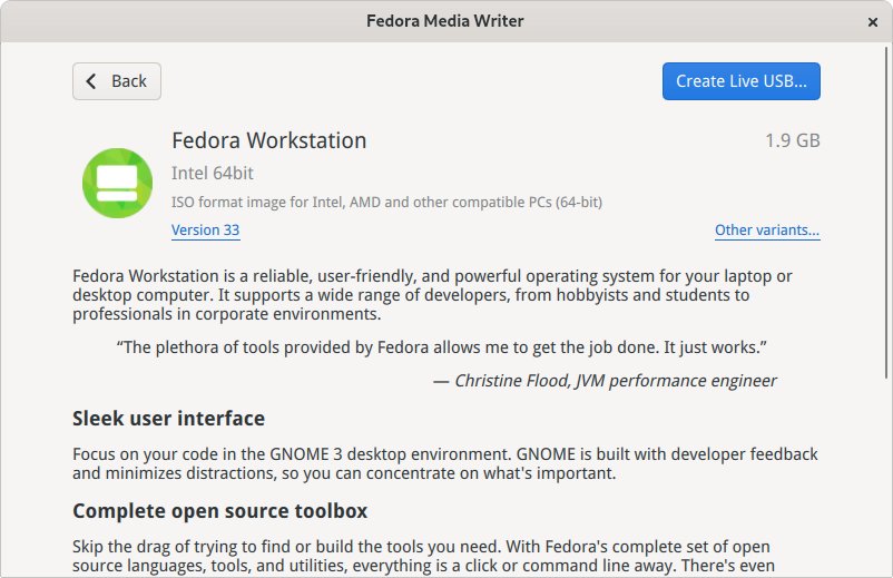 作为这项工作的一部分,Fedora Media Writer 的外观和风格也得到了改进。