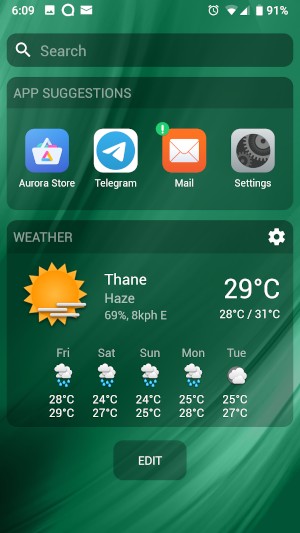 总而言之,用户界面是干净整洁的简单明了,增强了愉快的用户体验。 * 天气。天气小部件显示的是当地的天气。它不会自动检测位置,需要进行配置。