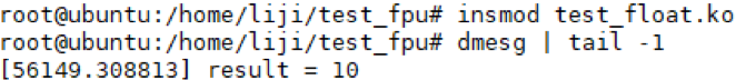 然后 insmod test_float.ko,观察 dmesg 的输出: