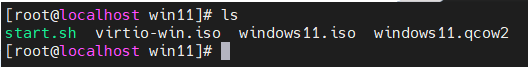 我们重新创建一个目录,用来存放 windows11.iso、virtio-win.iso 镜像文件以及马上就要生成的 windows11.qcow2 文件。