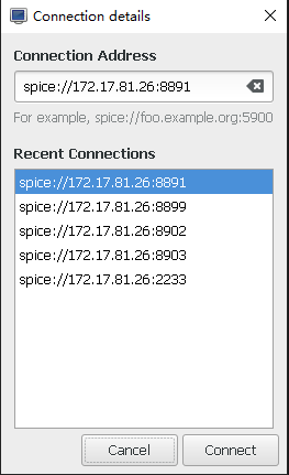 执行 start.sh 脚本,然后用 spice 协议连接172.17.81.26:8891端口: