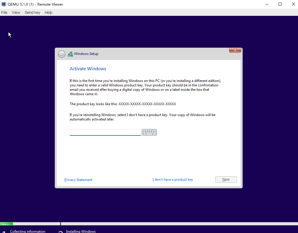 接着需要输入密钥,但我们并没有,此处选择“I don’t have a product key”即可。